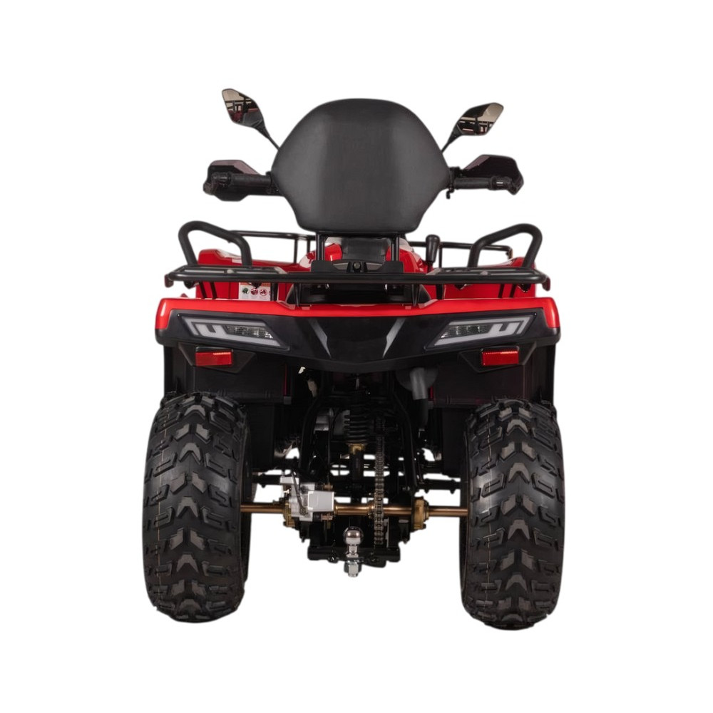 В основе квадроцикла электродвигатель с номинальной мощностью 4 кВт и пиковыми значениями до 8 кВт. Это даёт мощную тягу с места и уверенное преодоление подъёмов, грязи и сложных участков. Литий-железо-фосфатный аккумулятор (LiFePO4) с напряжением 76,8 В и ёмкостью 48Ah обеспечивает запас хода до 55 км, при этом отличается высокой надёжностью, долговечностью и стабильной работой в различных температурных условиях.