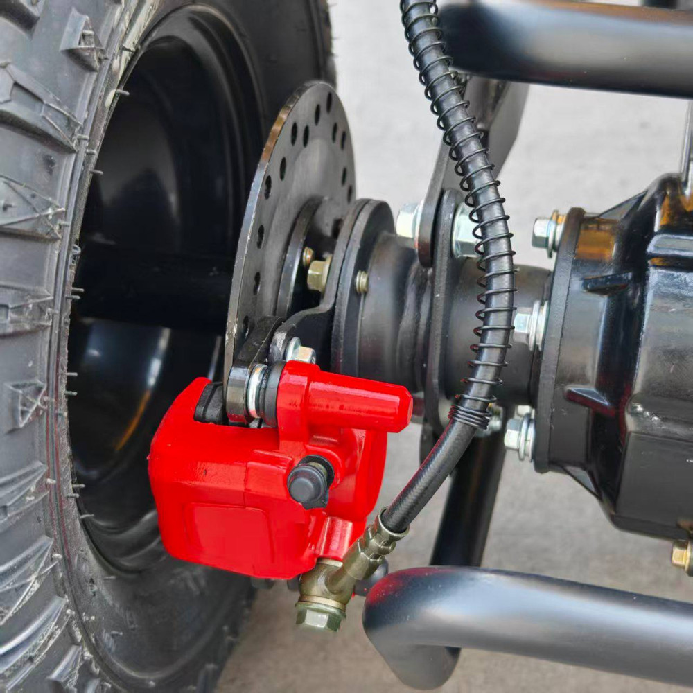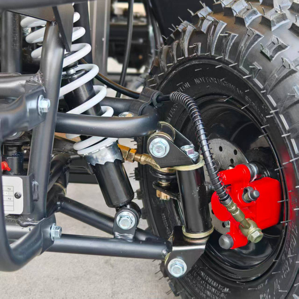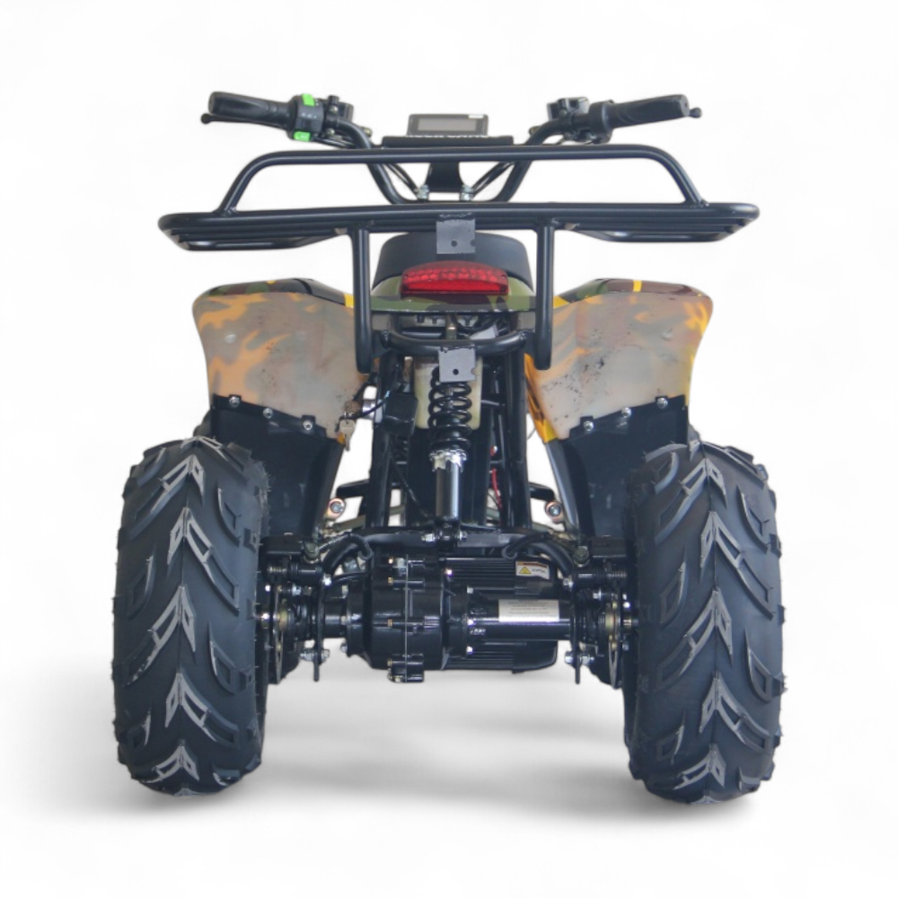 Внутри надёжный электродвигатель с мощностью 800 Вт, аккумулятор с защитой от перегрузки, и простая система пуска с ключа. Установлены дисковые тормоза, передняя и задняя подвеска, LED-фара для катания в вечернее время. А прорезиненные покрышки дают уверенное сцепление с дорогой.