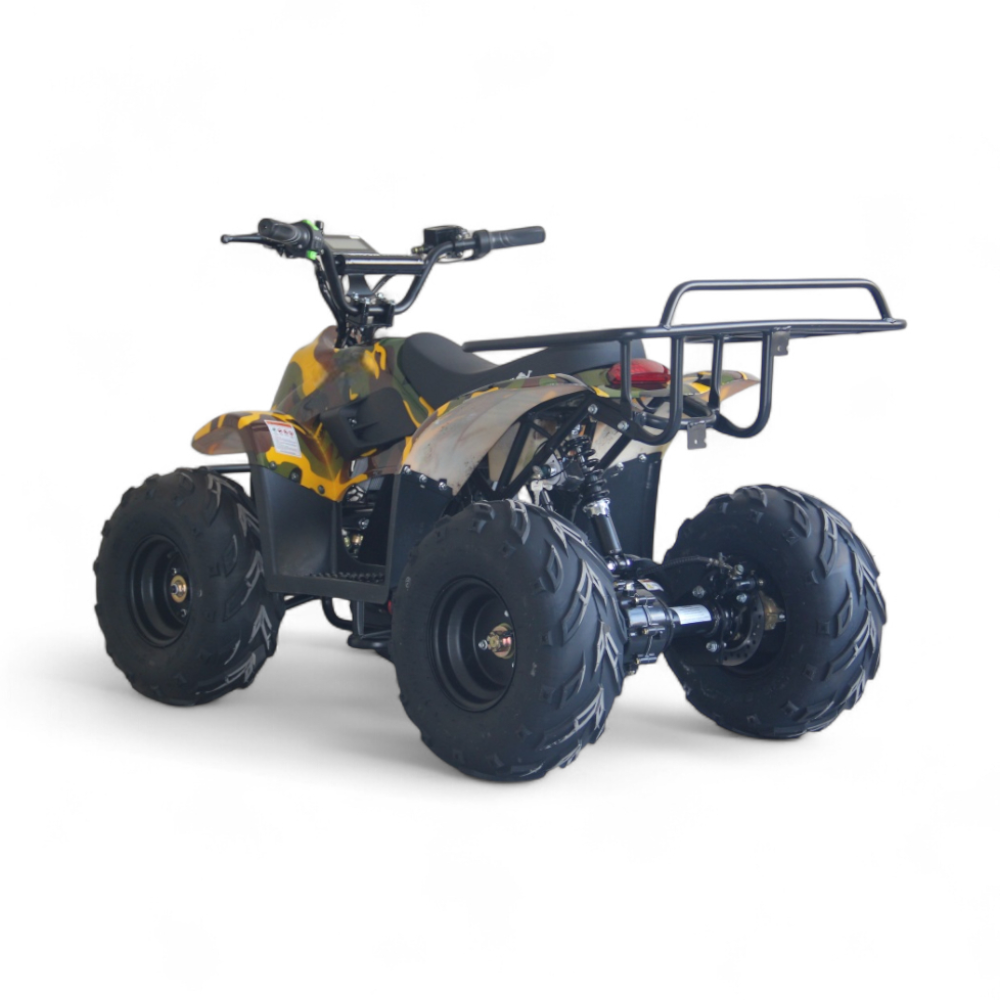 ECO MINI X3 сразу привлекает внимание агрессивным внешним видом и крупными шипованными колёсами. Посадка удобная, руль лёгкий, а ручки прорезинены и комфортны в хвате. Квадроцикл устойчив на неровностях и радует мягким ходом даже по дачным дорожкам или просёлочной тропе. Это тот случай, когда ребёнку не нужно объяснять, как ехать всё интуитивно понятно.