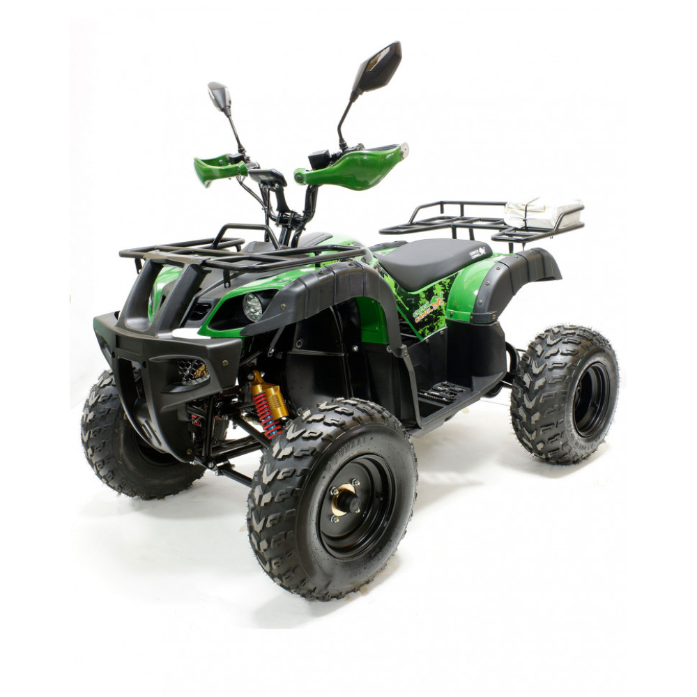 GreenCamel Сахара A3052 оснащен электродвигателем мощностью 3000 Вт и гелиевым/литиевым аккумулятором, заряжающимся за 8 часов. Запас хода на одном заряде — до 50/110/165 км (в зависимости от АКБ, веса райдера и типа дорожного покрытия). Большие пневмоколеса с протектором и пружинная подвеска облегчают прохождение бездорожья. У квадроцикла прочный корпус и удобное мягкое седло. Защитные крылья позволят не запачкать одежду при езде по лужам и грязи.