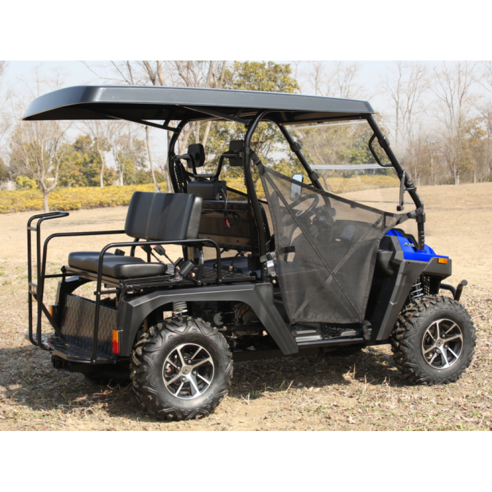 - Безопасность: Гольфкар оснащен системой безопасности, включая ремни безопасности и защитную раму, что обеспечивает надежную защиту водителя и пассажиров.