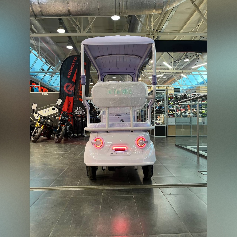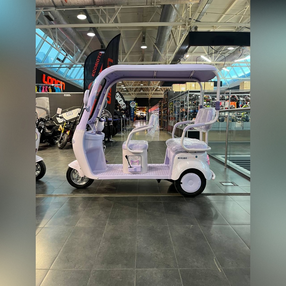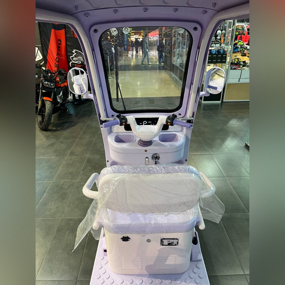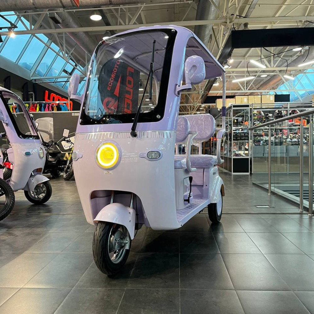 Электрический трицикл ECO MEINAIDI компактный трицикл с закрытой кабиной, созданный для тех, кто ценит удобство, безопасность и независимость от погодных условий. Благодаря продуманной конструкции с крышей и лобовым стеклом, он отлично подходит для ежедневных поездок, в том числе в прохладную или дождливую погоду. Данное решение на стыке скутера и мини-электромобиля простой в управлении и максимально практичный транспорт.